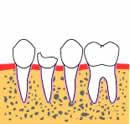 また、虫歯を治療してもかぶせることができないような場合、通常は抜歯しブリッジを作りますが、両側の歯を削りはめるので健康な歯もそのために傷みやすくなり自身の歯のように強く噛むこともできません。意図的歯牙再植技術を使うことでブリッジにしなくても済むようになります。自身の歯をすぐにもどしますので、歯根膜も傷がつかず、時間はかかりますが元のように歯は根付きます。